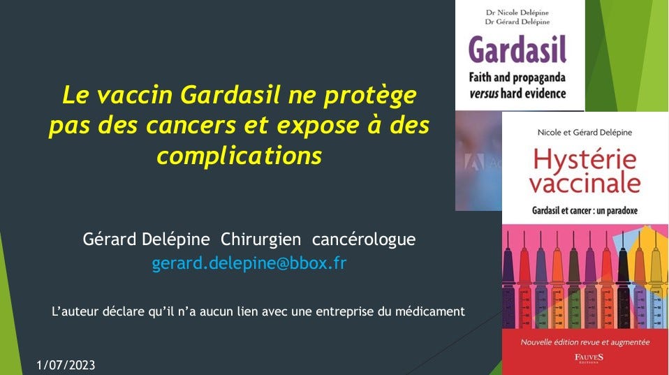 ” Ne faites pas courir de risques inutiles en vaccinant vos enfants par le Gardasil, inefficace contre les cancers et responsable d’effets délétères non négligeables.”